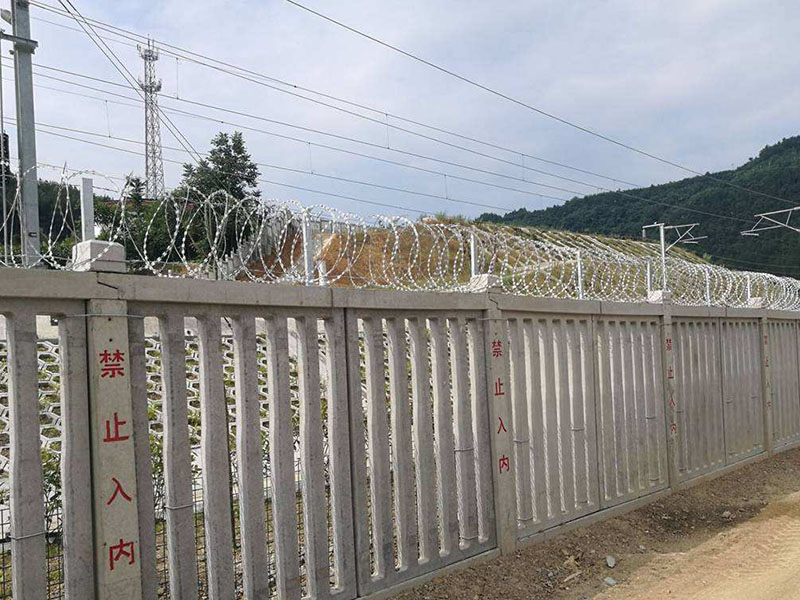 產(chǎn)品材質(zhì)及工藝:內(nèi)部采用HPB300冷拔低碳鋼絲與Q235矩管邊框;焊接完畢后,表面采用整體熱鍍鋅后浸塑處理,浸塑粉末一般采用墨綠、表面光滑、平整、日久抗腐蝕、抗紫外線的特性。鐵路防護(hù)柵欄是鐵路的安全設(shè)施安裝工程,主要應(yīng)用在鐵路軌道兩側(cè),用來防止來往的行人接近軌道及來往的火車,以保證行人的人身安全。因此,鐵路防護(hù)柵欄無論在技術(shù)上還是在質(zhì)量上都比其他隔離柵要求更加嚴(yán)格。鐵路防護(hù)柵欄采用立柱混凝土澆筑件,工程造價低,強(qiáng)度高,整體穩(wěn)定性好,適合大面積采用。